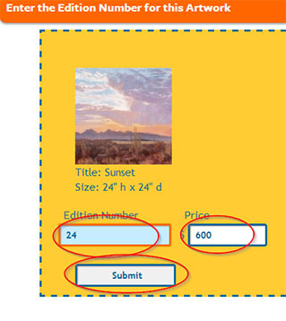 - If you choose to add one to inventory, you will be asked which number of the edition you are adding, and the price for the piece.