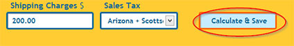 Important! Once you have entered your shipping and selected your sales tax, be sure and click the "Calculate & Save" button before doing anything else on the invoice page.