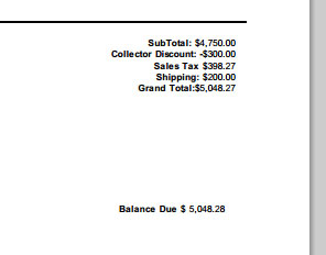 Discounts. If you are giving your client a discount, you will enter the discount for each individual piece of artwork. This allows you to control your discounts on a piece by piece basis. Enter the dollar amount of the discount and click on the "Save Discount" button.