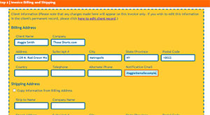 If you wish, you may add any additional information needed here. Please note that changes made here will not affect the client's information in your client list. The contact information on an invoice is separate from the contact information in your client list. This is important, because even if your client moves, or other contact information changes, you want the invoice to reflect the information that was current at the time of the sale.