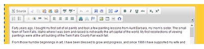 - Finally, you may add a greeting message to welcome visitors to your site. The interface for entering your welcome message is a lot like word processing software. You may type your message in plain text, or you may format the text as needed. We recommend keeping formatting to a minimum, to avoid conflicts with your site design. If, for example, you change the color of the text, your text may not display as desired on some ARTsala site themes.