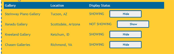 - If you have set up galleries/venues that show your work, you will see a list of them here, and you may select which ones you want to have appear on your contact page. If you want to add additional galleries, or change the contact information for a gallery, please see our Gallery/Venue Setup guide.