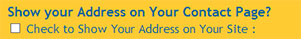 - Now, you can select whether you want your personal address to show up on the contact page. Remember, this address will show publicly if you check the box. If you don't wish to have your address shown on your website, leave the box unchecked.