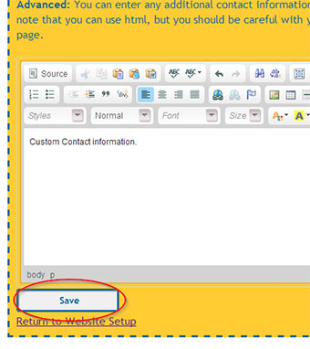 - Finally, you can add custom contact information to your contact page. See the warning above if you are pasting from word or considering formatting the text on your contact page.