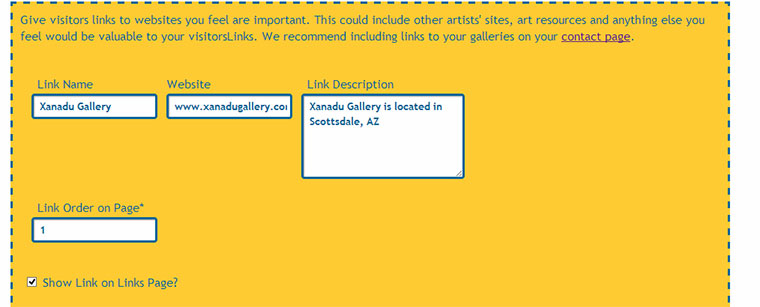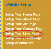 - Links Page. You may include a page of links to friends' websites, causes that you support, art websites, etc. Adding links is easy. If you don't include any links, the links page won't appear on your website or on your navigation bar.
