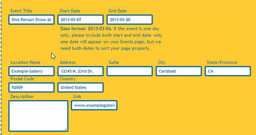 - You will be taken to your account profile setup page where you enter your biographical information, artist's statement, resume and portrait. To learn more about setting up this page visit our Profile Setup Guide.