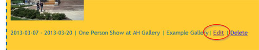 - Once events are added to your account you may edit them by returning to the Event setup page and clicking on the Edit link for the event. Note that both future and past events will appear on this page.