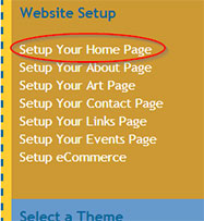 - You are now finished setting up your home page and can return to your website setup page menu to setup the rest of your pages.
