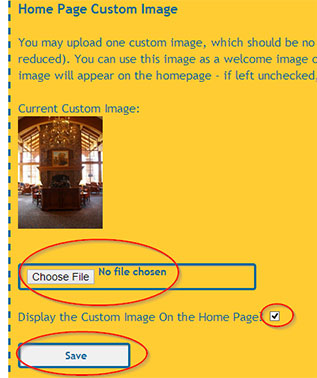 Important! If you are uploading a home page image to replace a previous image, and the old image won't disappear, try clicking the refresh button on your browser to reload the page.
