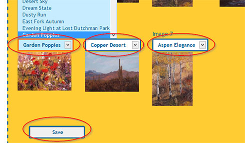 Use the drop-down menus to select the artwork you wish to display in your slideshow and click the "Save" button when you are finished.